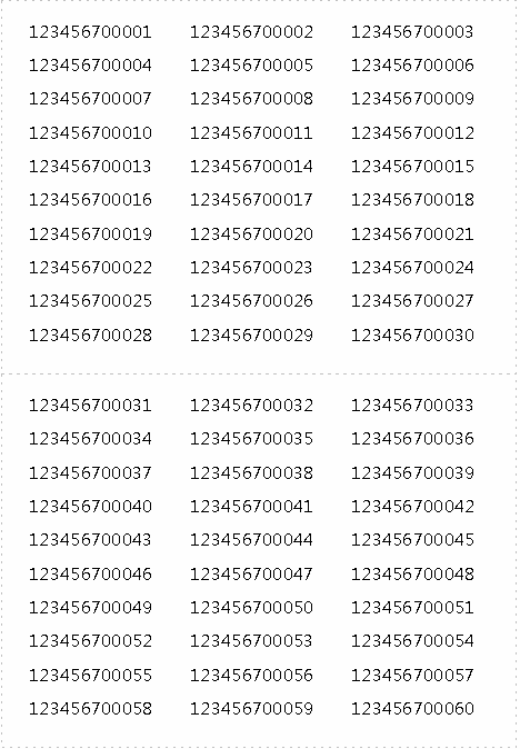假設(shè)我們要在尺寸為B5的紙張中打印2行1列的一系列不干膠標簽,每個小標簽里又包含30個有序數(shù)字,且相互連接;在一張紙結(jié)束后,第二張紙的第一位數(shù)字也要對接上第一張紙頁末的數(shù)字。應(yīng)該進行如下操作: