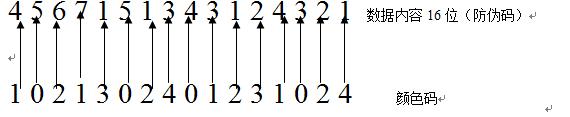 第一位顏色碼1對(duì)應(yīng)第一位防偽碼4 :