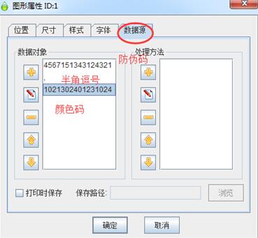 顏色碼可以提前準(zhǔn)備也可以臨時(shí)在條碼打印軟件中自動(dòng)隨機(jī)生成。只要保證輸入到文本數(shù)據(jù)源后,格式為:防偽碼,顏色碼 即可。(防偽碼和顏色碼中間用半角逗號(hào)隔開)