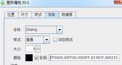 在條碼打印軟件中添加普通文本對(duì)象,在上面右擊選擇“屬性”,彈出的“圖形屬性”窗口下,選擇“字體”選項(xiàng)卡,勾選“彩碼”并將我們需要的RGB顏色代碼輸入到顏色集合里面:
